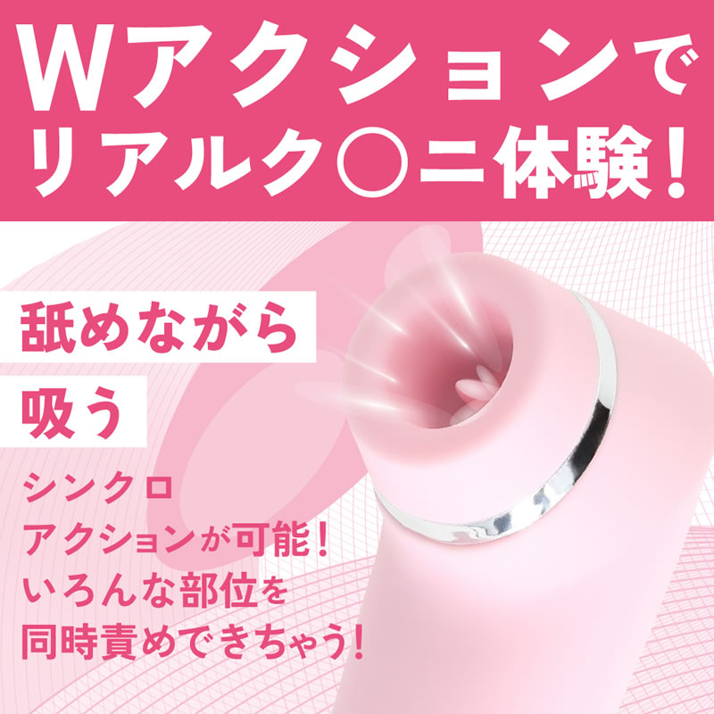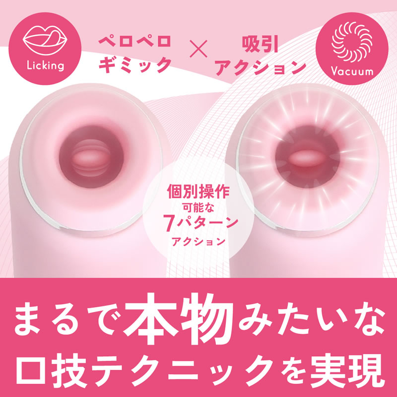肌触りの良い滑らかな高品質シリコン素材の吸引口と柔らかい舌パーツの舐めるギミックと高性能な静音モーターによる真空吸引アクションのW刺激でリアルなク◯ニ体験を再現しました。