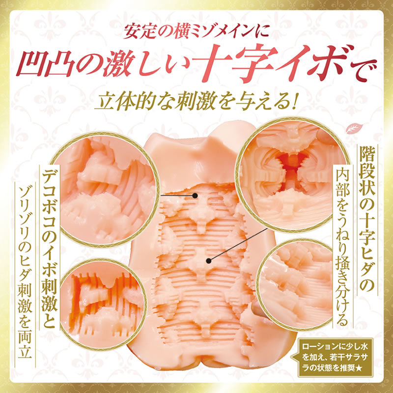 安定の横ミゾメインに凹凸の激しい十字イボで立体的な刺激を与える!