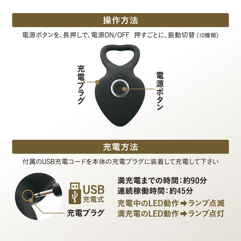 USB充電で簡単操作、満充電まで約90分、連続使用約45分。