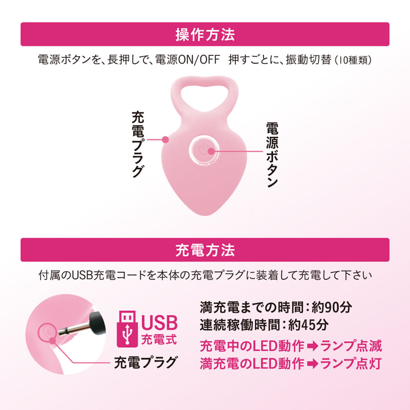 USB充電で簡単操作、満充電まで約90分、連続使用約45分。
