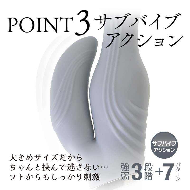 しっかりと擦れる快感を楽しめる形状のサブバイブにもパワフルモーターを搭載しています。
