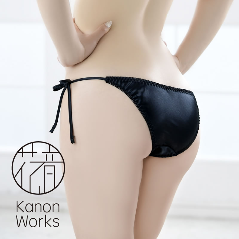 ★Kanon Works(花音ワークス) サテン生地使用脇ひも結びフルバックショーツ ブラック