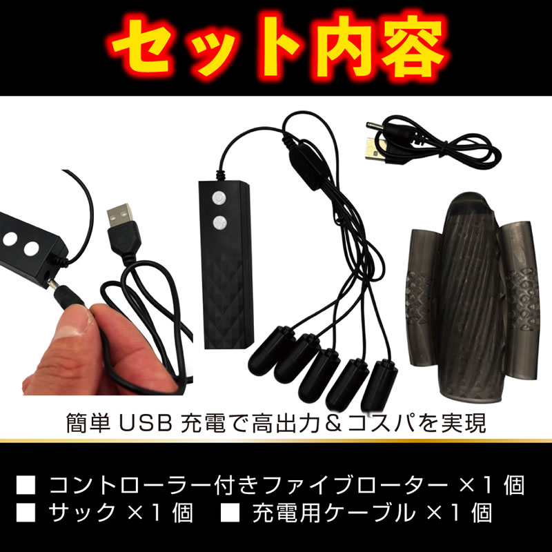 亀頭の先から竿まで、全身を振動させる5点同時刺激のファイブローター。