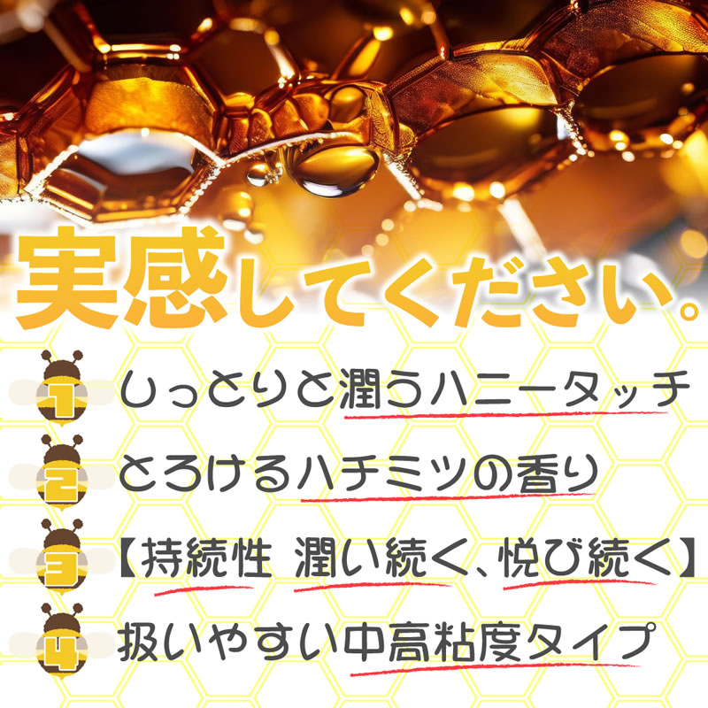 しっとり潤うハ ニータッチとほのかなはちみつの香りに癒される。