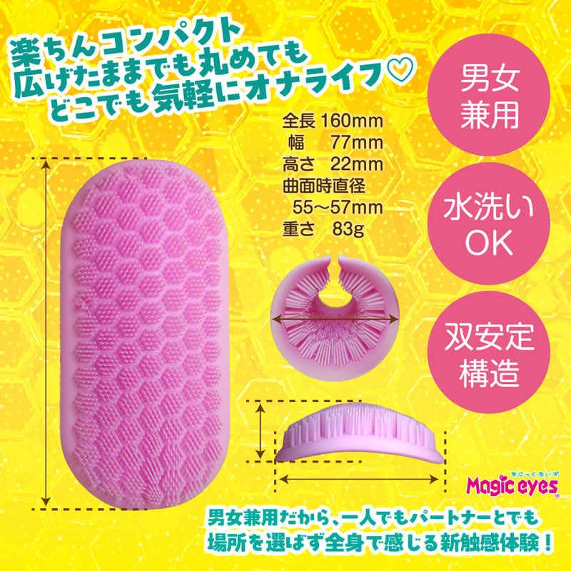 スラップバンドでお馴染みの双安定曲面構造の為、擦っても包んでもお楽しみ頂けます。