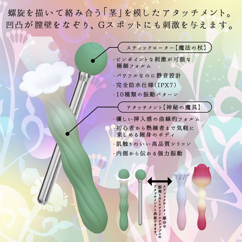 着脱可能なアタッチメントとシンプルなスティックローターのセット!