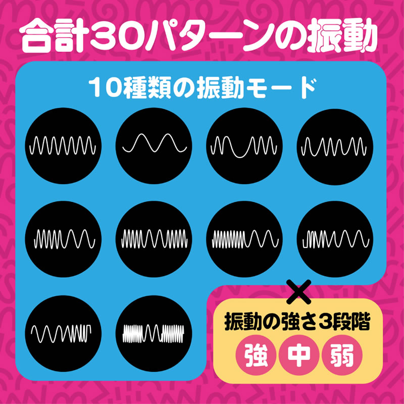 強中弱の切り替えと10個の振動モードで合計30種のパターンでお選びいただけます。