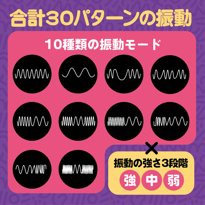 強中弱の切り替えと10個の振動モードで合計30種のパターンでお選びいただけます。