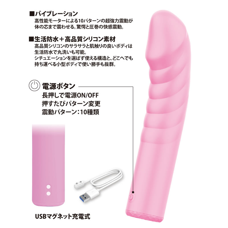 高性能モーターによる10パターンの超強力震動が体の芯まで震わせる。