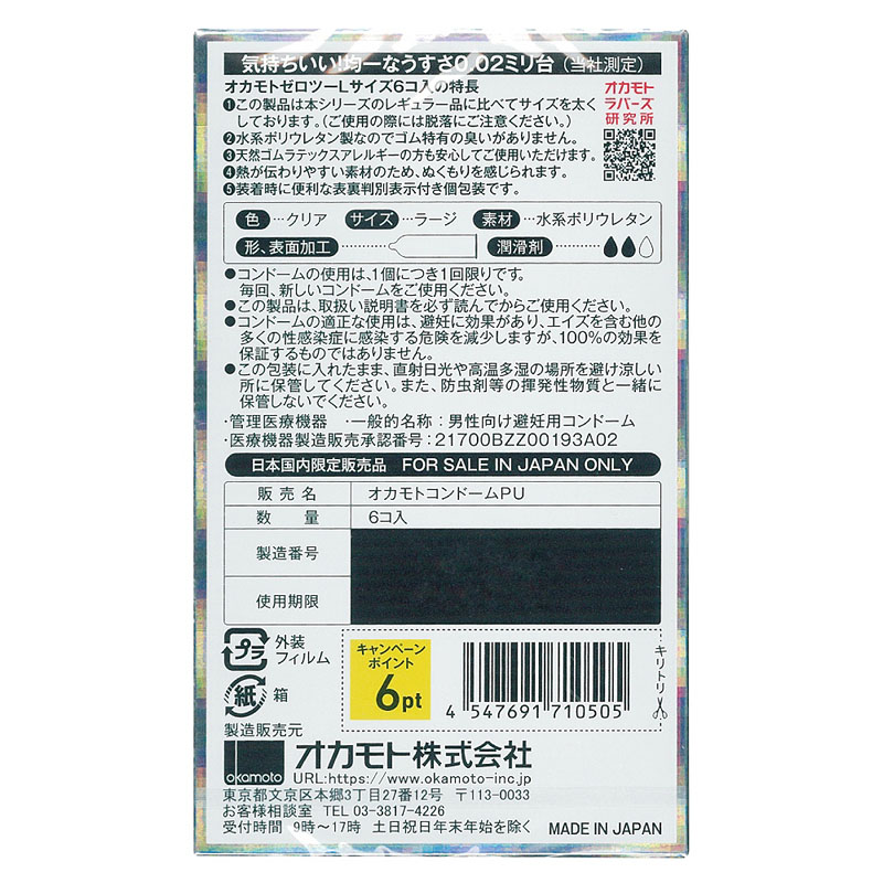 温もりが伝わる新感覚の薄さ!薄さ0.02mmの水系ポリウレタン製コンドームです。