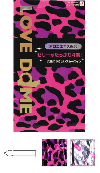 ゼリーの量が従来の4倍(オカモト社比)で挿入なめらか。アロエエキス配合ゼリー。やわらか天然ゴム製。