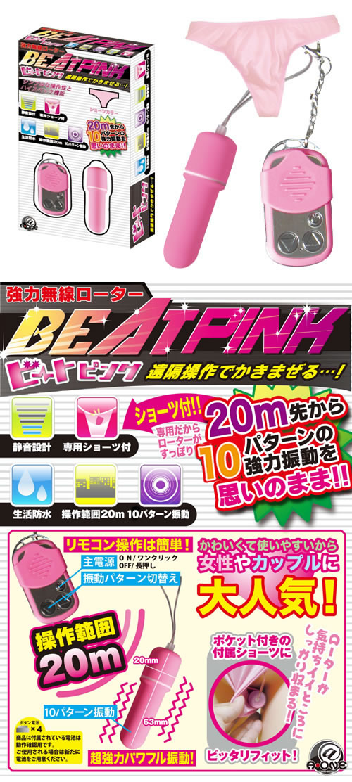 ピンクで可愛いサイズのローターからは想像もつかない超強力振動! 遠隔操作範囲は20m。静音設計。専用ショーツ付き。生活防水。10パターン振動。