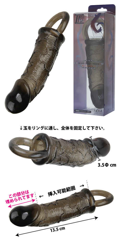 ペニスに被せると、肉厚での増大と亀頭部分の増大が簡単に可能です。