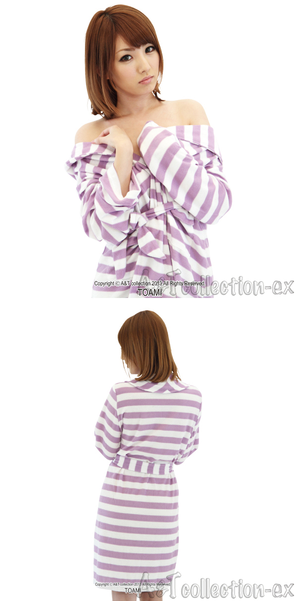 パイルよこしまボーダーガウン(パープル)【KB0048PP】