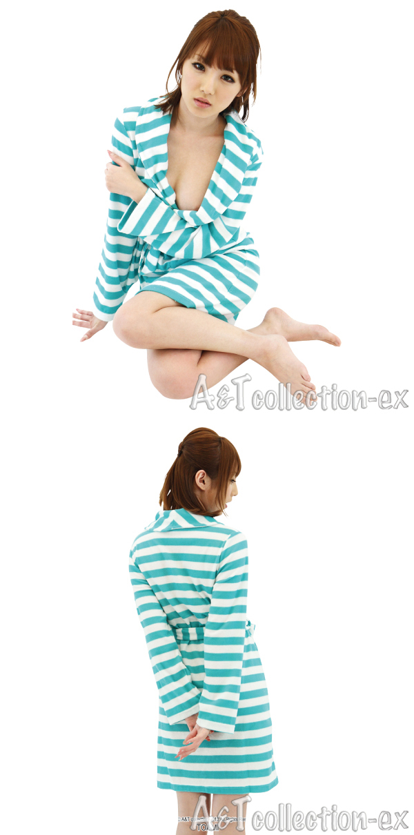 パイルよこしまボーダーガウン(ミントグリーン)【KB0048MG】