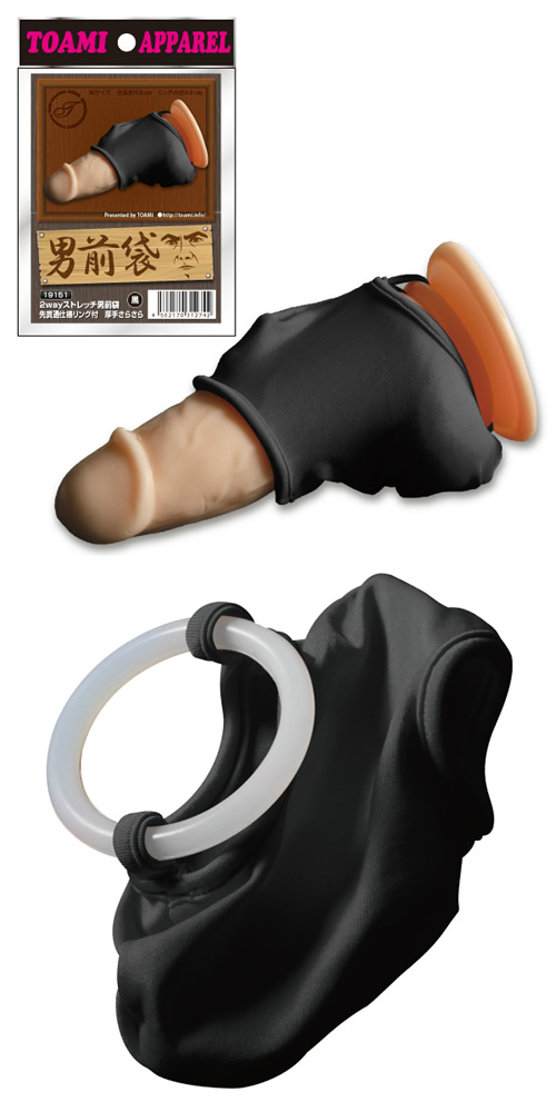 ★2wayストレッチ男前袋 先貫通仕様リング付 厚手さらさら 黒