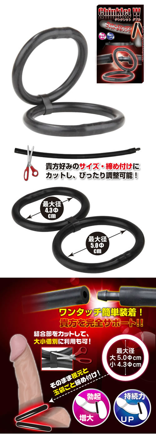 そのままで根元や玉袋ごと強力締め付け!結合部分をカットして個々のリングに分解も可能!!