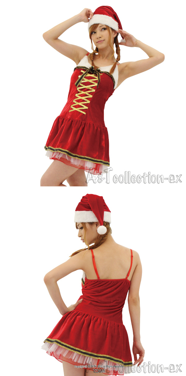 クロスデザインと女性らしいシルエットで美しく魅せるサンタ服♪
