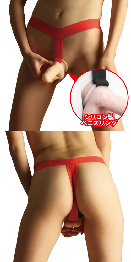 ★T字固定バンド付きシリコンペニスリング レッド【TOR71858RE】