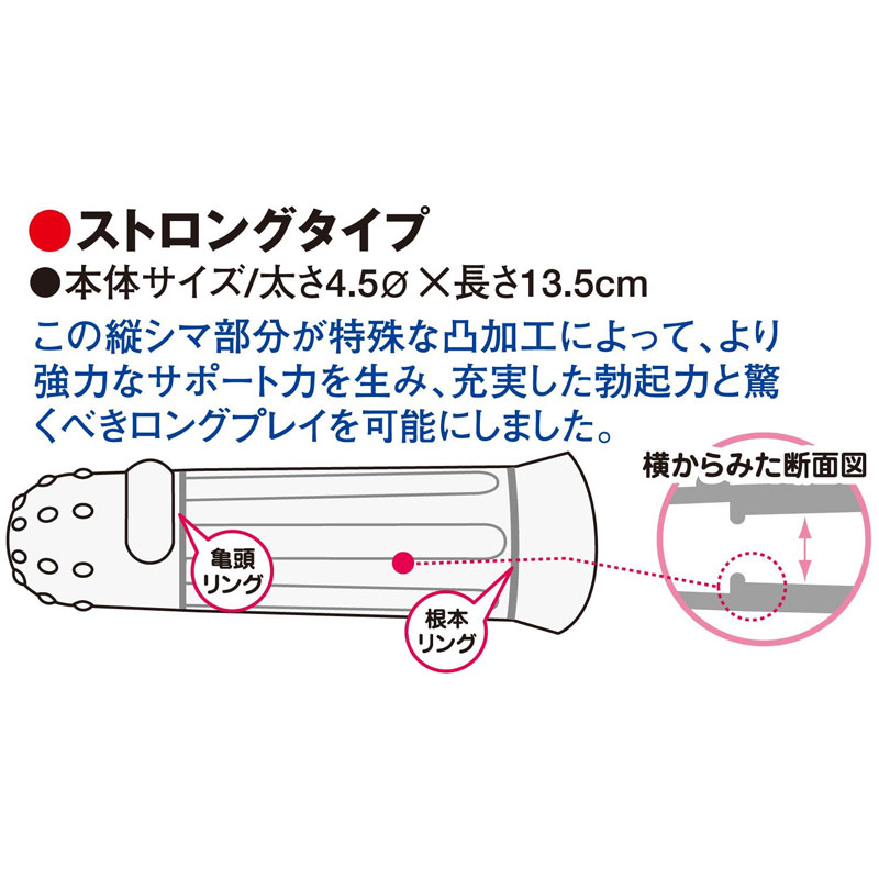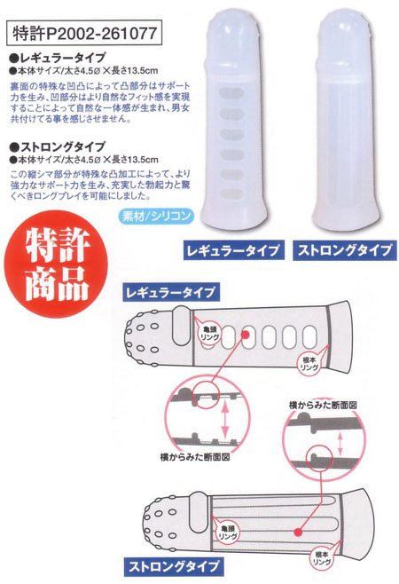 亀頭リングと根本リングのダブルリング機能。特許取得の違いを、ぜひあなたのムスコで感じて下さい。