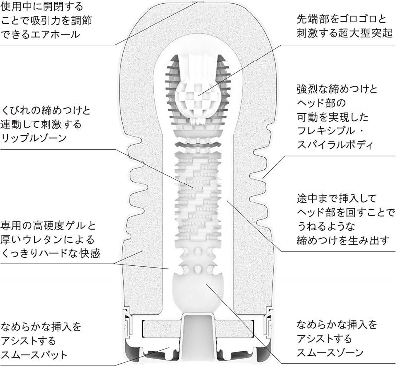 フレキシブルボディーによる亀頭部への刺激を、新開発“ローリングパワーボール”によって大幅に強化。さらに“エクストラボール”と“パワードストラップ”でサイドへの刺激も強化。
